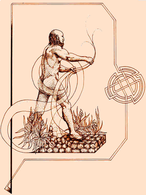 And yet, to the west the land of the Lunn stretched off into the far reaches of sight in billowing green mounds of valley lushness. It pushed ever westward in verdant waves to the distant lands of ice which are called Artranum. Before Nordo came, these lands were merely chalky deposits amid the porphyry rock outcroppings. Why and how the Lunn survived in the desolate region is beyond all conjecture. The only thing that is certain is that when Nordo came to this barren place he was impressed by the fortitude and courage of the people to try to carve out an existence in the lands of their ancestors. Perhaps because of this, and because of the pity he felt for them in their artless nature, Nordo had endeavored to give them the fruits of his art. (It was rumored that when Nordo gazed upon the lands held dear by the Lunn, he wept in sympathy, and it was his own tears that spread out over the land to restore it to its once verdant beauty.) |