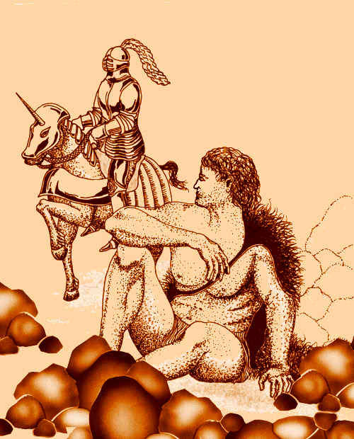 The Balance In Space carried Nordo's Tales Of The Golden Comet tightly beneath his arm; it seemed to warm his chest on which it clung. Soon the book would be hidden within the mossed rocks of Maelnru's Cairn, safe from intruding thieves who would not dare defile the sanctity of this holy place, and known only to himself and his beloved Tzimar. The guard troops would know also of the hiding of the book, but Greunweiln planned to kill them all on their return to Æberaun anyway. The dust which lay upon the ground churned below the warriors' steeds' hoofs, and billowed to their backs. They moved slowly and cautiously, themselves awed by the hallowed surroundings. |