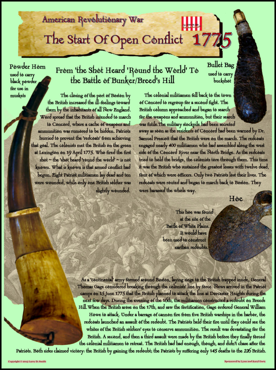 The exhibit consisted of American Revolutionary War artifacts from the collection of Larry D. Smith.