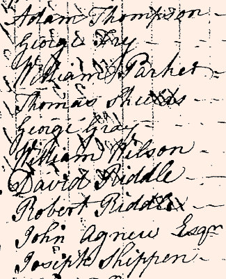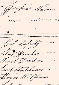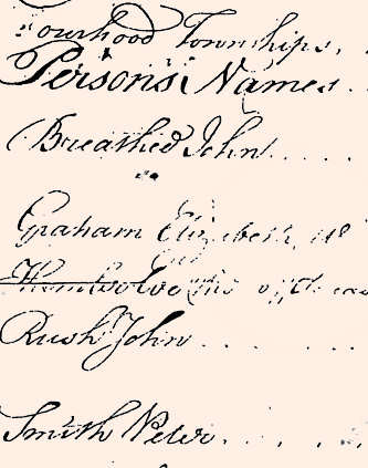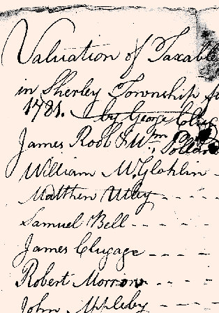 During certain years there might be more than one copy of the return for the tax assessment. The returns were sometimes written out prior to the tax collector making his rounds, copying the previous year's return (assuming that the families that were there the previous year, would still be there this year). Then, when the tax collector made his rounds, he would add names in for the settlers who had moved into the region since the previous year, or cross out the names for residents who had left the region. If more than one return is in existence, the return from which the Pennsylvania Archives were transcribed will be included on the primary pages of the township, with the additional returns shown on an auxiliary page.