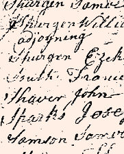 During certain years there might be more than one copy of the return for the tax assessment. The returns were sometimes written out prior to the tax collector making his rounds, copying the previous year's return (assuming that the families that were there the previous year, would still be there this year). Then, when the tax collector made his rounds, he would add names in for the settlers who had moved into the region since the previous year, or cross out the names for residents who had left the region. If more than one return is in existence, the return from which the Pennsylvania Archives were transcribed will be included on the primary pages of the township, with the additional returns shown on an auxiliary page.