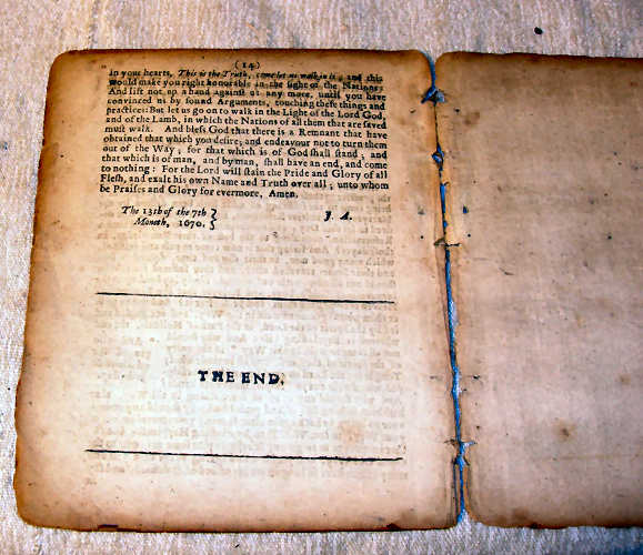 | The complete title to this work is: A CALL TO ALL BISHOPS, AND OTHERS, WHO ARE ZEALOUS FOR THE BOOK OF COMMON PRAYER, &c. (for which I have been also sometimes zealous) By way of rememberance, now to come to the Way of the Quakers to the Grace of God, to the Light and Spirit of the Lord, &c, which they so often in words have prayed for and desired, as may appear by the ensuing Relation, and Collection out of the Book of Common Prayer, compared with the Principle and Practice of the People called QUAKERS. This, like the item titled: Innocency Cleared, was a pamphlet written by a Quaker to promote that faith. Although it is not stated as such, it is probable that this, like the other work, was written in prison and published by a friend of the prisoner; it is dated: The 13th of the 7th Moneth, 1670. |