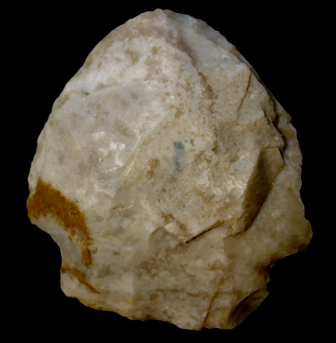 This is another example of a stone arrow head used by the indigenous inhabitants of the New World prior to the arrival of the Euro-Americans. This arrowhead was found in the region encompassed by present-day Bedford County. Its shape suggests that it comes from the Archaic cultural period which lasted from approximately 8000 BC to 1000 BC.